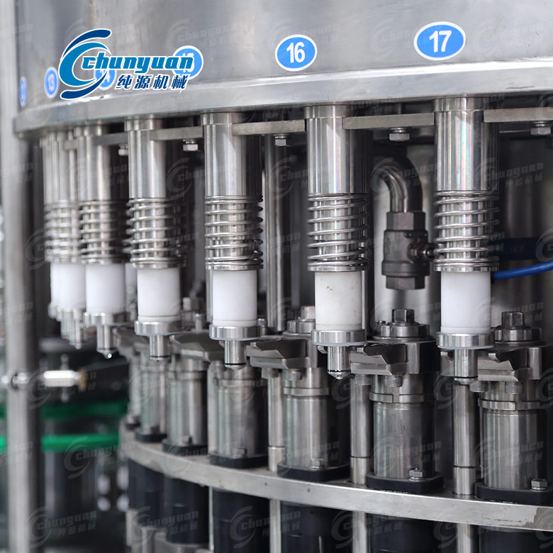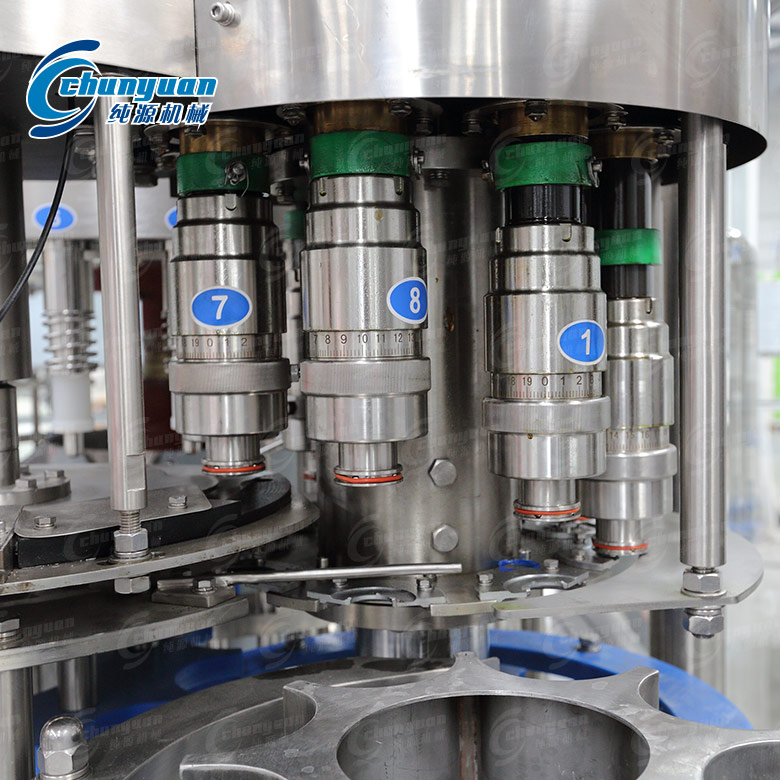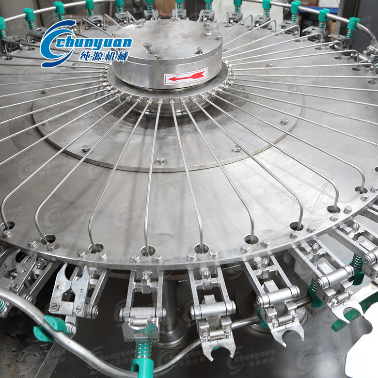 采用PLC電腦程序控制及人機界面觸摸按鈕(電氣可根據(jù)客戶需求設計安裝),具有料缸內頁面自動控制,無瓶不罐裝,無瓶不加蓋等功能,采用變頻器無級調速,生產(chǎn)能力數(shù)字顯示,調整極其方便。純源機械廠家制造生產(chǎn)的三合一純凈水灌裝機用于聚脂瓶裝各種純凈水、礦泉水、飲用水等生產(chǎn),其設計科學合理,外形美觀,功能齊全,操作維修方便,自動化程度高。