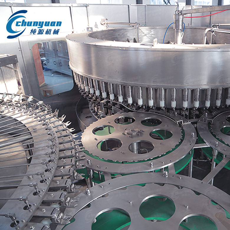 瓶裝純凈水灌裝機械適用于灌裝350ml-1500ml等容量的瓶裝純凈水,是相融合了國內(nèi)外的先進技術,再結(jié)合純源機械多年以來的研發(fā)經(jīng)驗,自行研發(fā)而成的全自動洗瓶、灌裝、旋蓋三合一純凈水灌裝機。