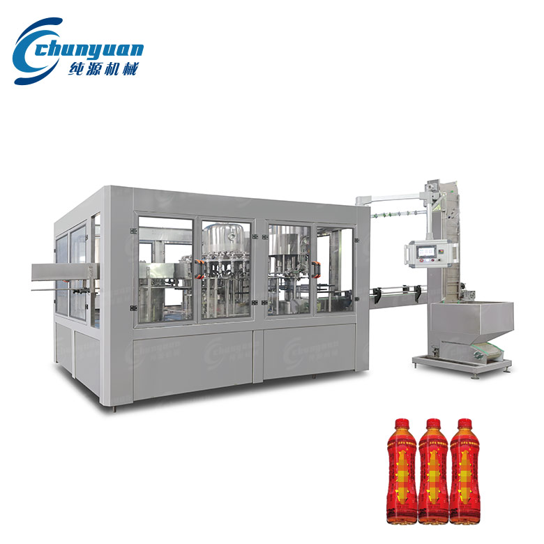 三合一涼茶飲料灌裝設備集洗瓶、灌裝、封蓋于一體,是以引進、消化、吸收國外先進技術為基礎,根據我國純凈水、礦泉水,果汁等飲品的灌裝工藝要求,自行創(chuàng)新設計、研制而成的一種具有國內先進水平的茶飲料灌裝線。