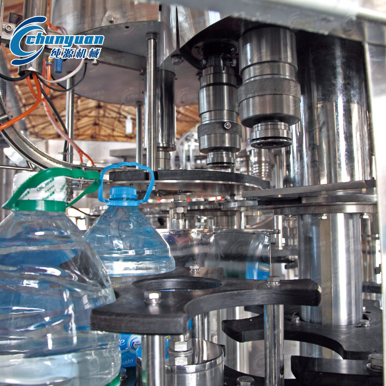 純源機(jī)械廠家制造生產(chǎn)的3-5L大瓶純凈水設(shè)備適用于聚脂瓶裝3升、4升、5升等純凈水、礦泉水、飲用水的生產(chǎn)。大瓶純凈水設(shè)備在一機(jī)上實(shí)現(xiàn)沖瓶、灌裝、封蓋。3-5L純凈水設(shè)備設(shè)計(jì)科學(xué)合理,外形美觀,功能齊全,操作維修方便,自動化程度高。