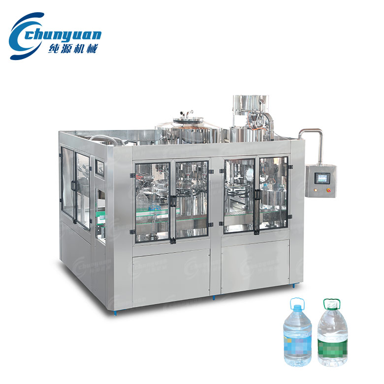 3-5L大瓶水灌裝機是生產(chǎn)3-5升大瓶水灌裝生產(chǎn)、礦泉水生產(chǎn)、飲用水生產(chǎn)的清洗、灌裝、封蓋的生產(chǎn)設備。3-5L大瓶水灌裝設備灌裝速度快、液面控制穩(wěn)。采用鏈道進瓶、沖洗、卡瓶口灌裝、封蓋、不受瓶子高矮限制,只要瓶口、瓶頸、瓶蓋尺寸相同一致,隨意更換瓶型,更換瓶型同時需更換所有拔輪導板即可,擰蓋頭采用磁力扭矩式,實現(xiàn)抓蓋、擰蓋功能。