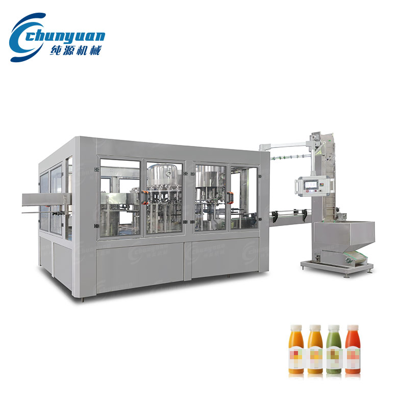 純源機械專業(yè)供應果汁果粒、橙汁、果肉、水果汁、葡萄汁等果汁飲料灌裝機械。其果汁飲料灌裝機灌裝快、穩(wěn)、準,設有完善的物料回流系統(tǒng)。