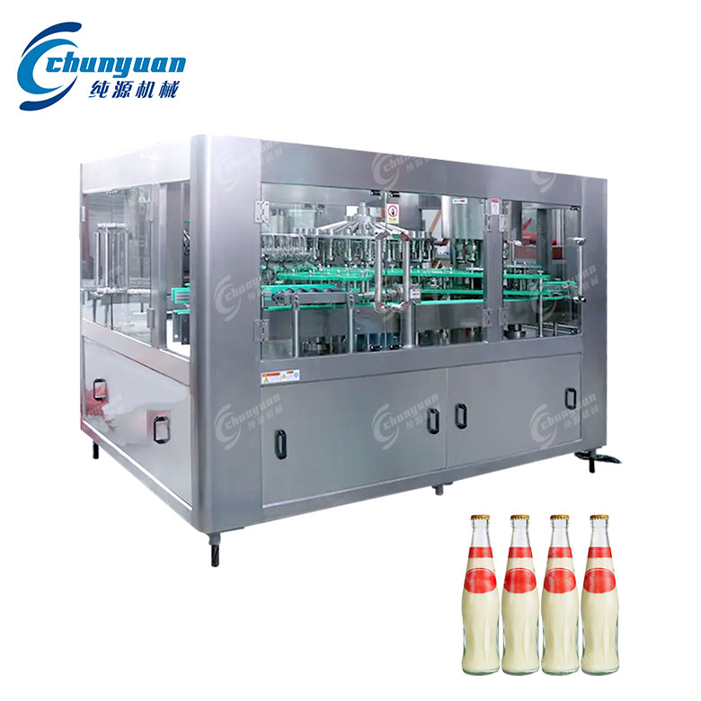玻璃瓶豆奶灌裝機(jī)是專(zhuān)為非碳酸、非熱敏性或中溫滅菌型植物蛋白飲料(如豆奶、花生奶、杏仁露等)設(shè)計(jì)的全自動(dòng)灌裝設(shè)備,適用于玻璃瓶包裝。由于豆奶具有高蛋白、易沉淀、易滋生微生物等特點(diǎn),其灌裝工藝需兼顧衛(wèi)生安全、防沉淀、密封可靠等要求。