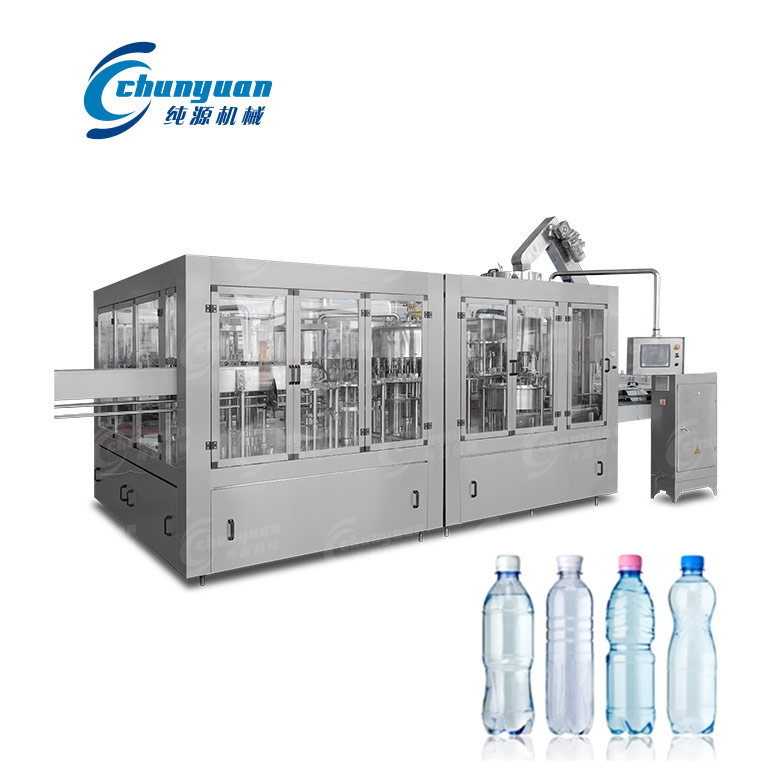 純源機械廠家制造供應的小瓶裝純凈水灌裝設備適用于灌裝350-1500ml聚脂瓶裝各種純凈水、礦泉水、飲用水等生產(chǎn)。