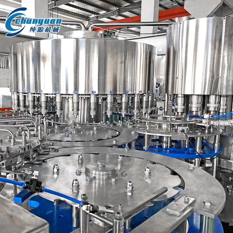 純源機械廠家制造供應的小瓶水灌裝機械適用于灌裝350-1500ml聚脂瓶裝各種純凈水、礦泉水、飲用水等水生產(chǎn)。小瓶水灌裝設備集沖洗、灌裝、封蓋三個功能于一體,全過程實現(xiàn)自動化。