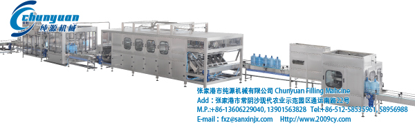 張家港市純源機械研發(fā)制造的CYTZ系列桶裝水灌裝設(shè)備集自動洗瓶、自動上瓶、灌裝、套蓋、壓蓋、成品送出于一體。桶裝水灌裝設(shè)備適用于灌裝3加侖、5加侖水桶的全自動灌.............