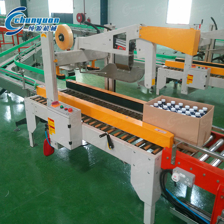 全自動折蓋封箱機(jī)紙箱上蓋自動折入,平穩(wěn)順暢,封箱作業(yè)一氣呵成,美觀省力,可配合自動化包裝機(jī)械系列使用;新型貼帶器,不用鼓風(fēng)機(jī)吹挺膠帶,利用壓片裝置,使膠帶挺立不彎下而造成不能粘貼;上下皮帶傳動,主傳動機(jī)構(gòu)使用特殊培林座高精密、低噪音,增加皮帶使用壽命。